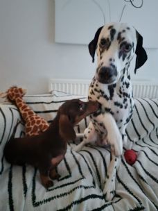 We have used Helen to mind our mini daschund Frankie since he was a 4 month old puppy, he is 17 months old now. He is a typical daschund, timid and a fussy eater but Helen is great with him helping him to socialise with other dogs and helping him build his confidence. She takes excellent care of him in her lovely home and when we are away sends us photos and videos to put our mind at ease. We miss him terribly when we are away but wouldn't leave him with anyone else as we Know he is well looked after and cared for