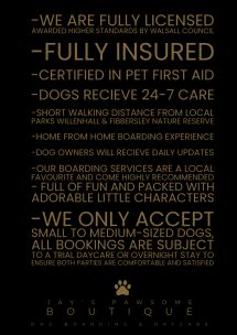 Welcome to Jay's Pawsome Boutique, We are a Dog daycare, Dog Boarding & Walking provider based in Willenhall WV13 and serve ALL surrounding areas of the West Midlands.