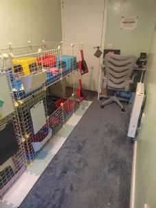 We also have spaces available for hamsters, mice, and gerbils that come in their cages.