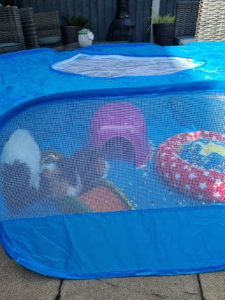 I have bespoke 8 foot indoor cages and outdoor hutch and run. Fully enclosed garden and outdoor enclosure