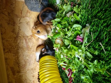 Cleaned daily fresh hay and veg