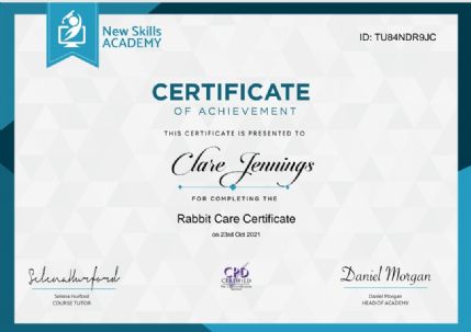 Highly recommended. I wouldn't take Paws my rabbit anywhere else. Clare is so lovely and I had no doubt that Paws was in safe hands.