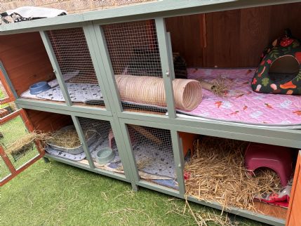 Every lodger gets daily time in our run which is over 6ft long and 4ft wide! They'll only be put into their hutch once they've had adequate exercise or when its time for bed!