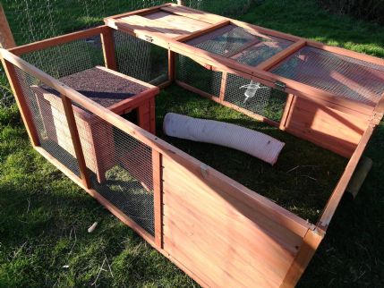 We have one outside bunny suite which is a 6x4 shed with permanent 6x3ft aviary attached so 42sqft which can be heated and is fully insulated