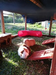 From start to finish our experience of using the Guinea pig hotel was fantastic. Karen was super flexible, communicated promptly, even delivered our piggies when we had to quarantine after our trip! Our boys enjoyed fresh home-grown veg, outdoor runs and an aircon unit because they stayed during a heatwave! Thank you, we are definitely recommending them and our piggies will be coming back as well when we go away again!