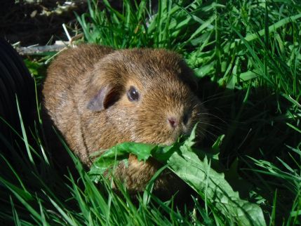 Guinea pigs stay in a 5ft long hutch, in one of the sheds or in our house during the winter. Each hutch has a sleeping area, food bowl and water bottle and plenty of fresh hay to eat and nest in.