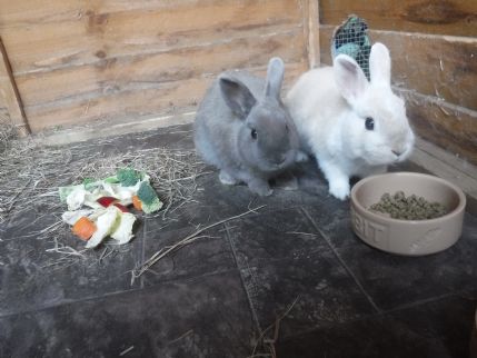 Rabbits will stay in one of our pet sheds with approximately 6ft x 8ft of indoor space and 9ft x 8ft of outside space to hop around. There is a hutch for sleeping, a litter tray, food bowl, water bottle and a rack of fresh hay.