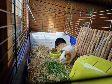Bedding hay and sawdust is provided. Owners are encouraged to provide their animal’s regular food to avoid digestive issues, but guinea pig pellets and eating hay can be provided free of charge if needed. Daily fresh vegetables are included.